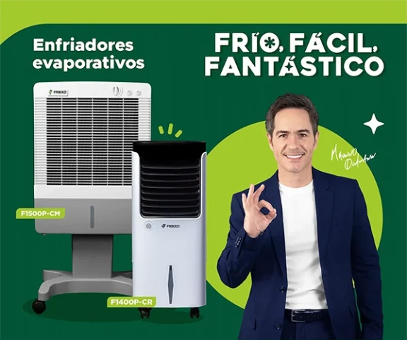 Los enfriadores Frikko de aire evaporativo o aire lavado, son excelentes para enfriar cualquier habitación. Son ideales para el clima seco ya que humidifican el ambiente al mezclar el aire con sus paneles mojados.